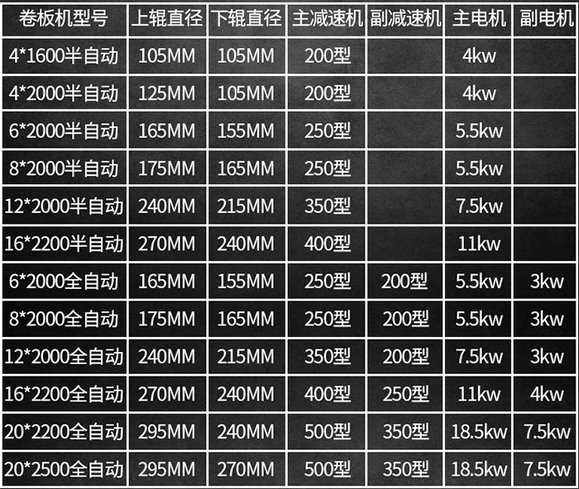 上輥壓下由附電機經減速機帶動蝸輪蝸杆、絲杠螺母副傳遞動力,使板材產生彎曲變形。卷製傳動通過主電機經主減速機、開式齒輪帶動下輥旋轉,並成為卷板時的主要動力。上輥裝置由上輥、上輥軸承座等組成。上輥兩端軸承座安置滑動軸承。上輥升降用蝸輪蝸杆傳動,壓下裝置由附電機提供動力,通過減速機、蝸輪蝸杆、絲杠螺母機械聯動傳遞扭矩使上輥上下移動。下輥裝置由下輥、下輥軸承座、下輥齒輪及滑動軸承等組成。下輥為主動輥,通過主傳動減速機輸出軸上的齒輪帶動下輥齒輪傳動扭矩至下輥。主要由反倒手柄、倒頭體、活動鉸鏈等組成,翻倒裝置功能是方便成品取出。